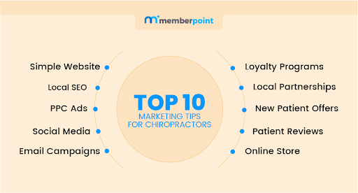 Proper marketing ideas for chiropractors will contribute to your practice’s growth and increase and retain the same number of customers. Take advantage of partnerships with local businesses, special promotions for new patients, and the importance of showcasing good reviews.